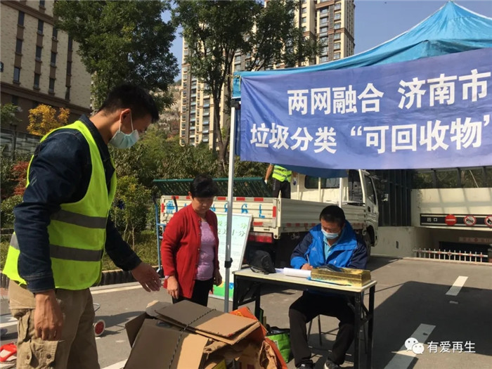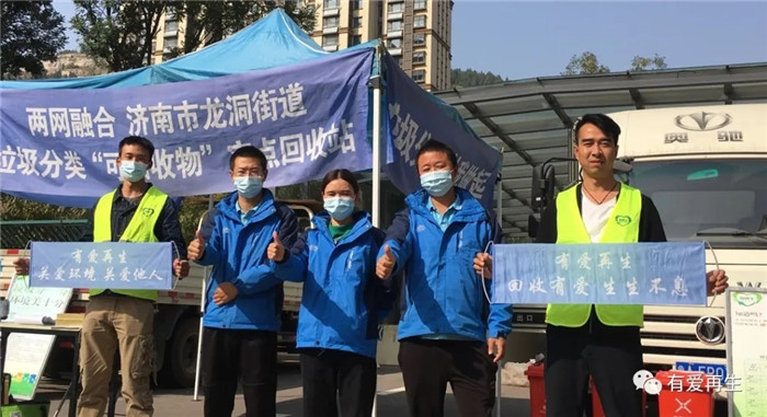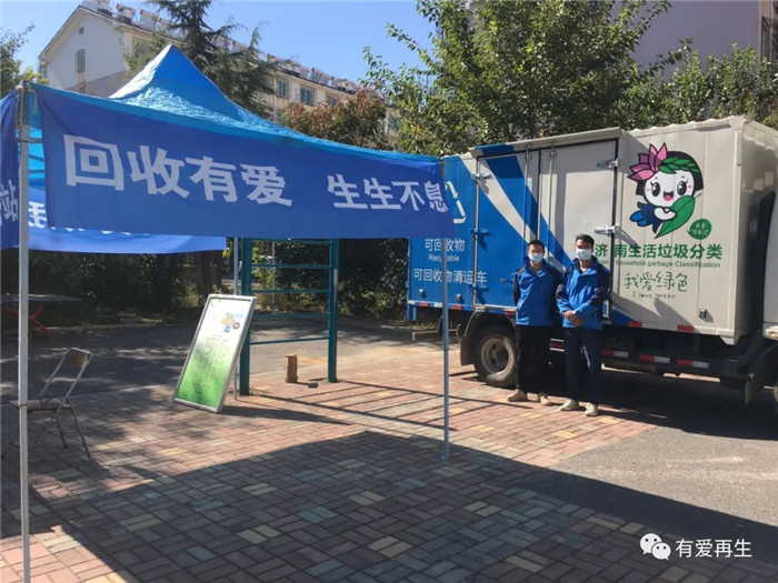 今年,濟南很多居民們驚喜地發(fā)現,配合政府垃圾分類工作,社區(qū)里出現一頂頂物資回收“藍帳篷”。承擔著“兩網融合”的重任,統(tǒng)一著裝的小哥哥、小姐姐們,向居民散發(fā)垃圾分類的宣傳說明書,同時,將大家清理出來的廢棄物指導進行分類收集、分類投放、分類回收。由于他們定時定點出現在小區(qū)固定位置,大家習慣性前去打打招呼、問問題,交流最近可回收物的行情,問問廢棄物怎么投放,成了大家念念不忘的“歡樂角”。